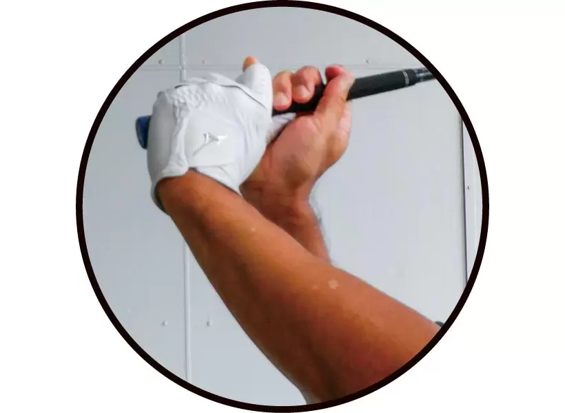 体が固くて回らない人は手首のコックも使いましょう。
