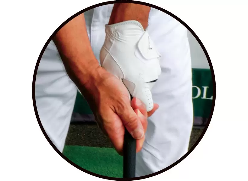 シニア世代に多いウィークグリップはフェースが開いて当たりやすい。