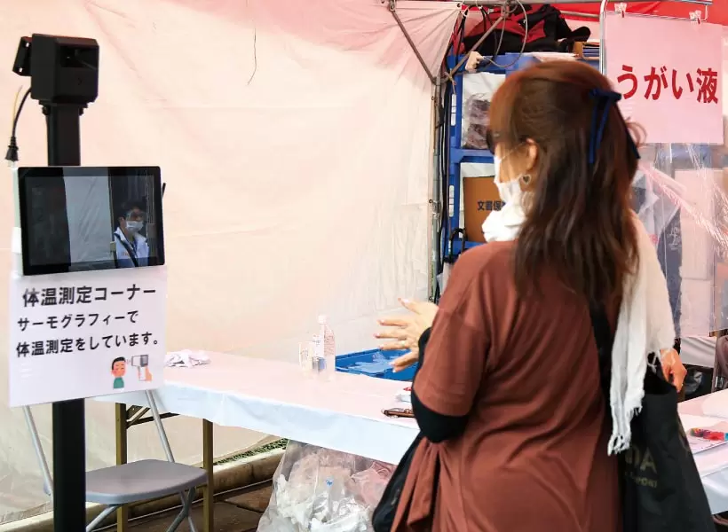 出場選手や関係者だけでなくギャラリーにもサーモグラフィーによる検温を実施。