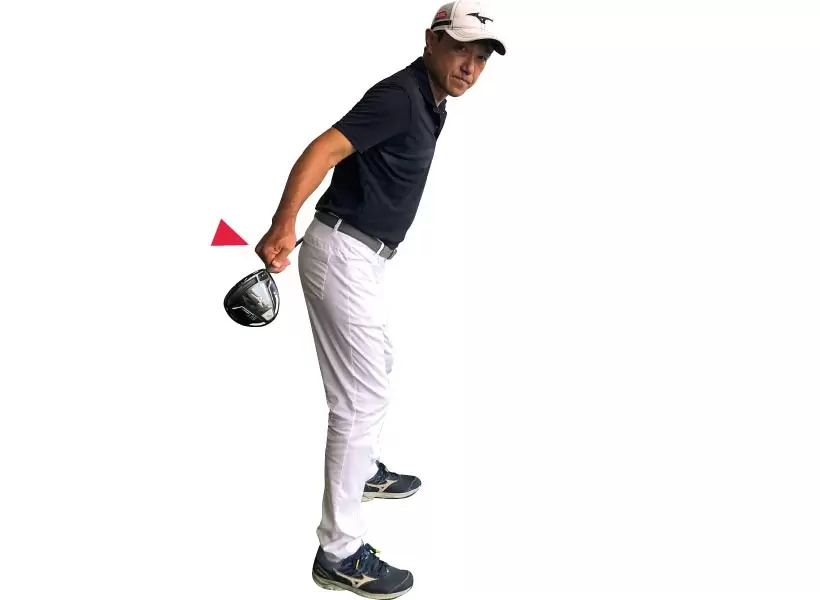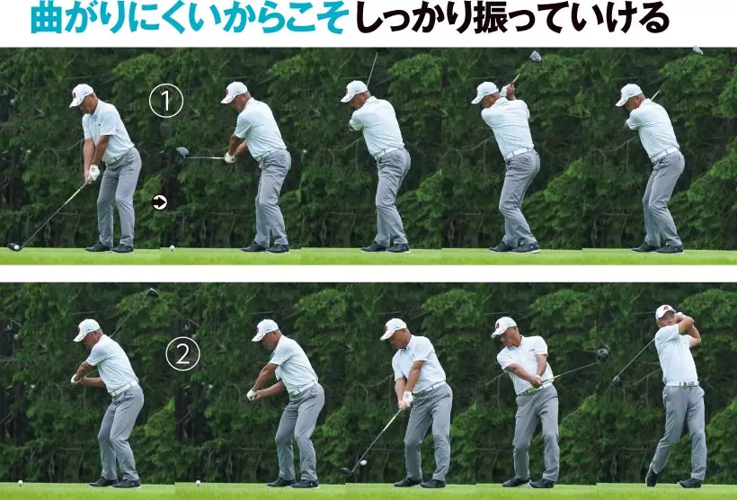 ①時計の針で3時を指す深いトップ。慌てて振らなくても十分にヘッドを加速できる。