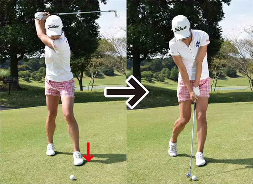 左足を前に踏み出してボールと適正の距離まできたらダウンスイング。