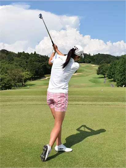 歩くときのタイミングを意識し、下半身を使ってスイングすることが飛ばしのコツ。