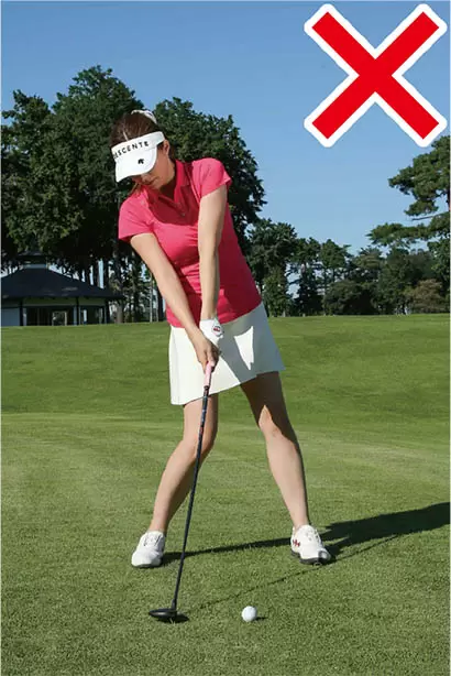 意図的にアッパーブローに打とうとすると、インパクトが右足体重となる。これがすくい打ちを招く。