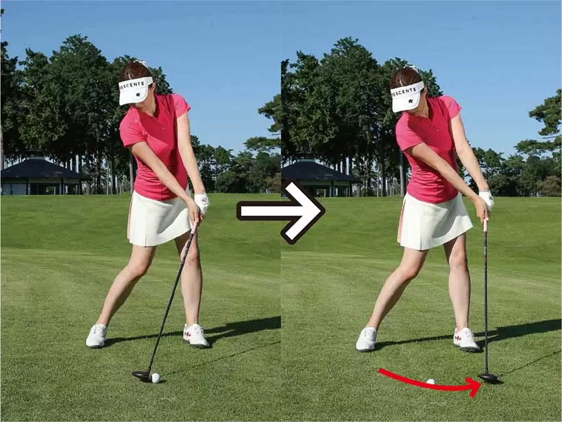 持つクラブでボールの位置を変えていけば、インパクトポイントも自然に変わる。