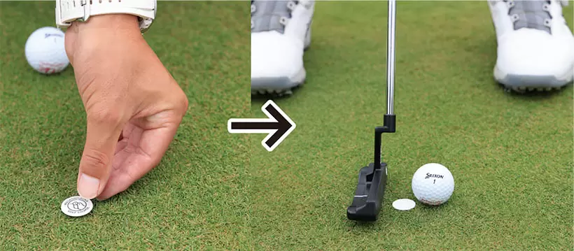パターヘッドがボールマークに触れないように打てたら、軽いアッパー軌道でインパクトできた証拠。