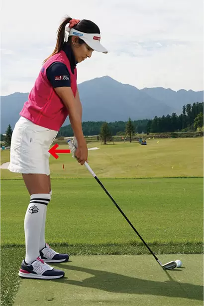 インパクトで両手が前に出すぎて、ボールがネックに当たるとシャンクになる。