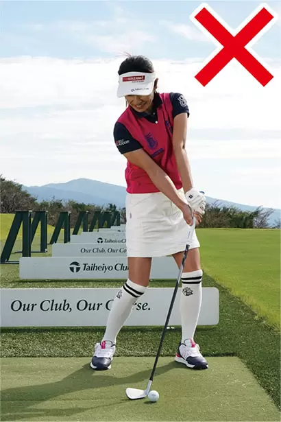 ボールを上げようとしてダウンスイングで手首が早くほどけるのはNG。