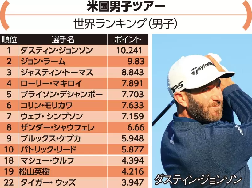 今年8月に世界ランク1位に返り咲いたダスティン。プレーオフ最終戦のツアー選手権でも優勝し、年間王者に輝いた。
