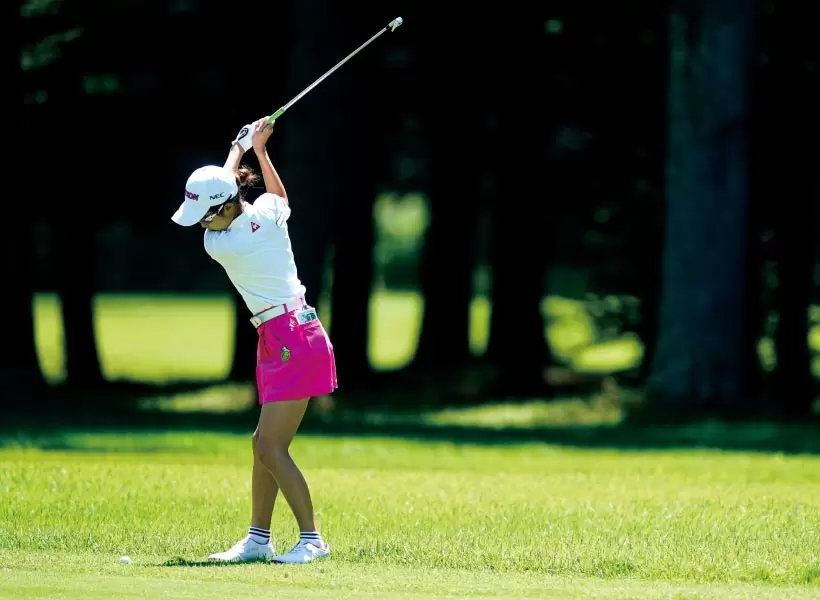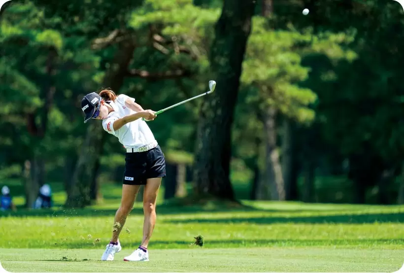 試合中のアイアンショットを見ても、トップでシャフトが斜めの角度におさまったコンパクトトップになっている。