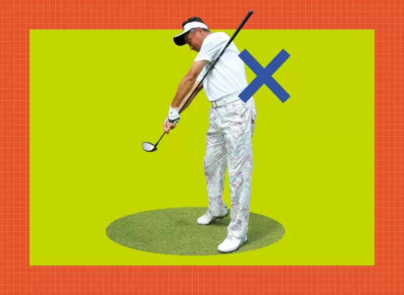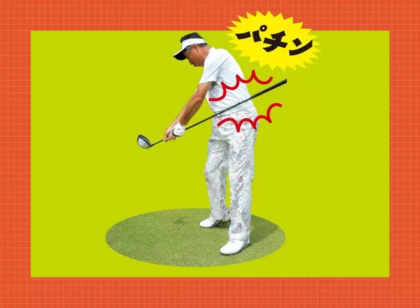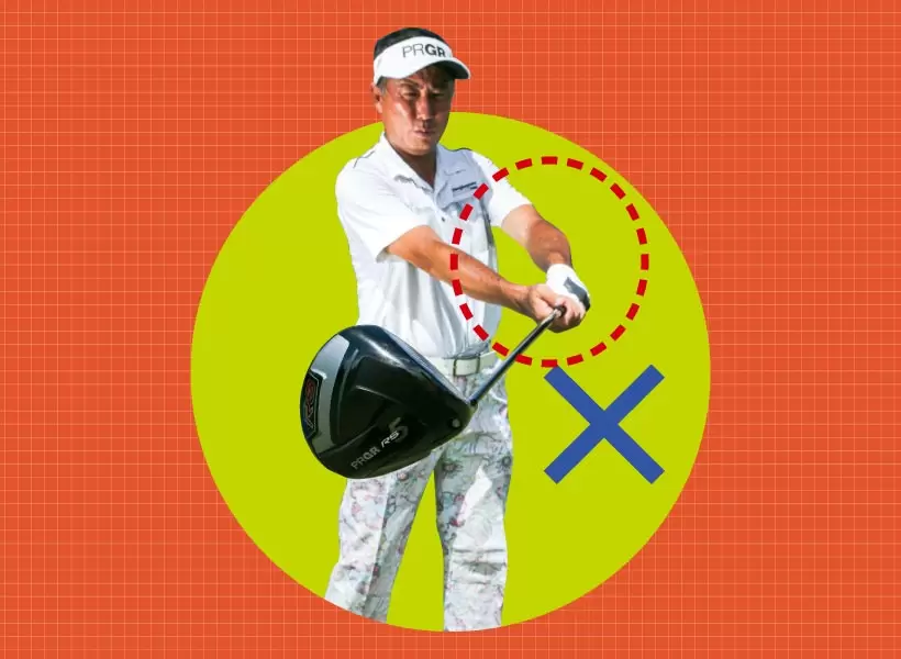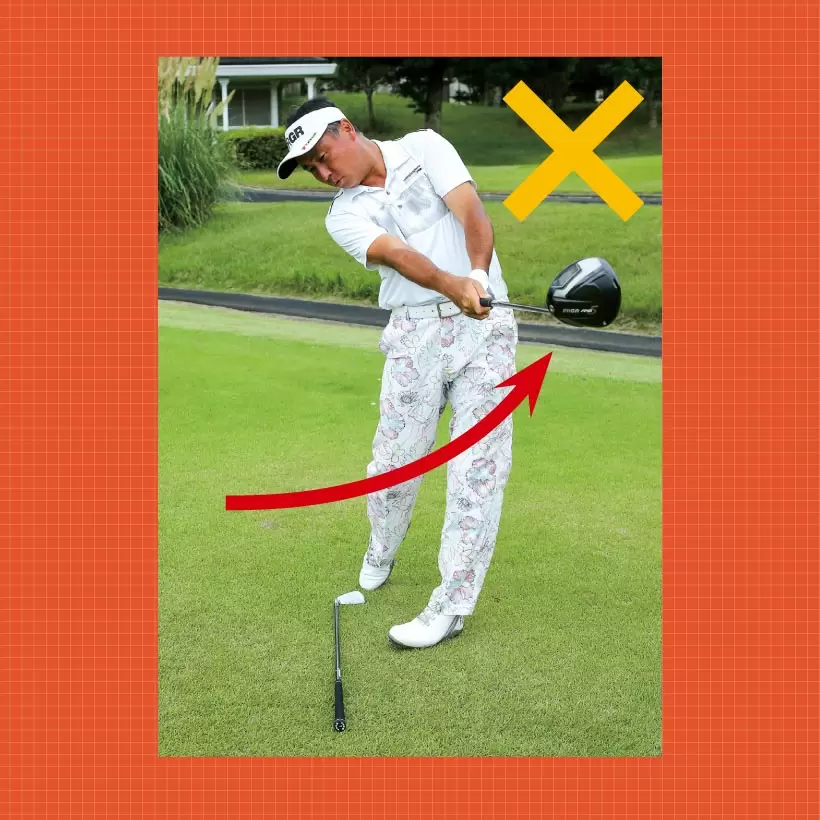 左ワキの上側に当たるのは手元が上がり、フェースが開いている証拠。