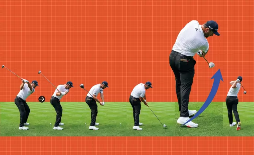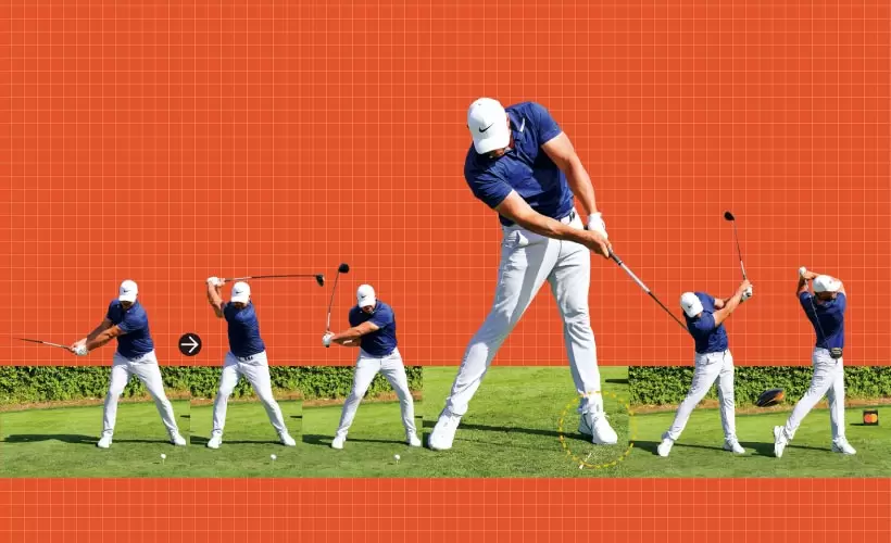 インパクトからフォロースルーにかけて左ワキが締まり、ヘッドが手元を追い越すように振り抜いている