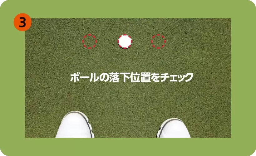 自分から見てマーカーの右側にボールが落ちたらアドレスのボール位置は左足寄りになってます、左側にボールが落ちたらアドレスのボール位置は右足寄りです。前者ならオフセットは小、後者はオフセット大がオススメ。ボールがマーカーに当たった人はオフセット中になります。