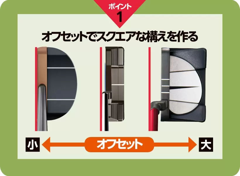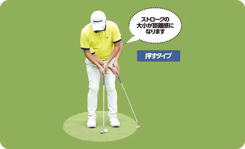 中間的なヘッド幅のパターは“打つ”タイプの人でも“押す”タイプの人でもOK。