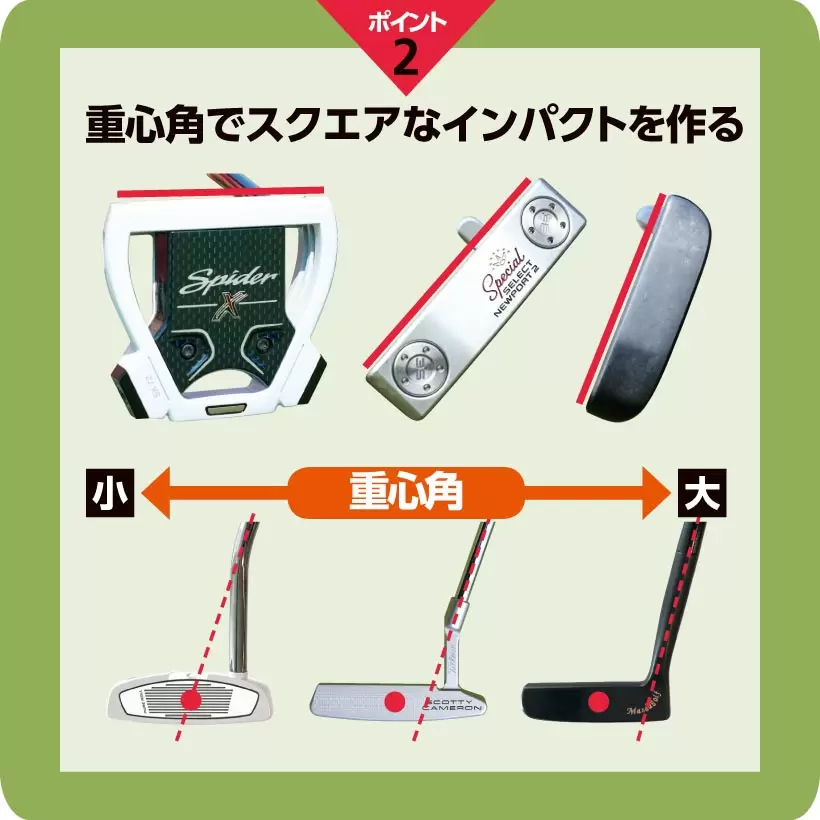 ストレートなストーク軌道をイメージしている人は重心角が小さいものが合う。