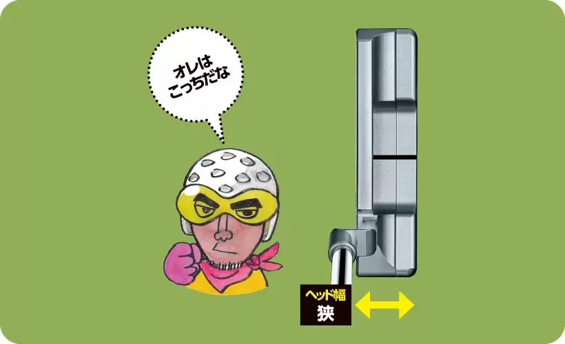 インパクトの強さで距離感をつかみたい人にはヘッド幅が狭いパターが合う。