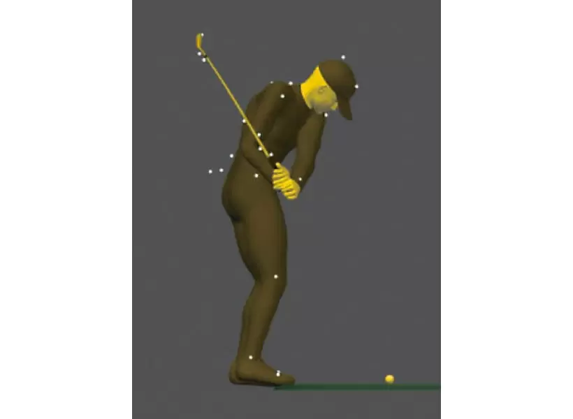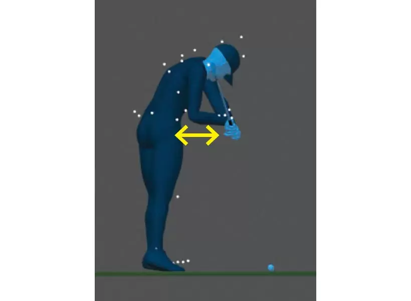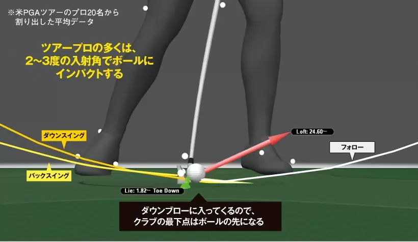 ギアーズで計測|ボールの手前が最下点になると、アッパー軌道でインパクトすることになる。※ギアーズとは、ワンスイングで600以上のデータを解析。体とクラブの動きを360度3次元で数値化できる世界最新鋭のスイング解析システム。