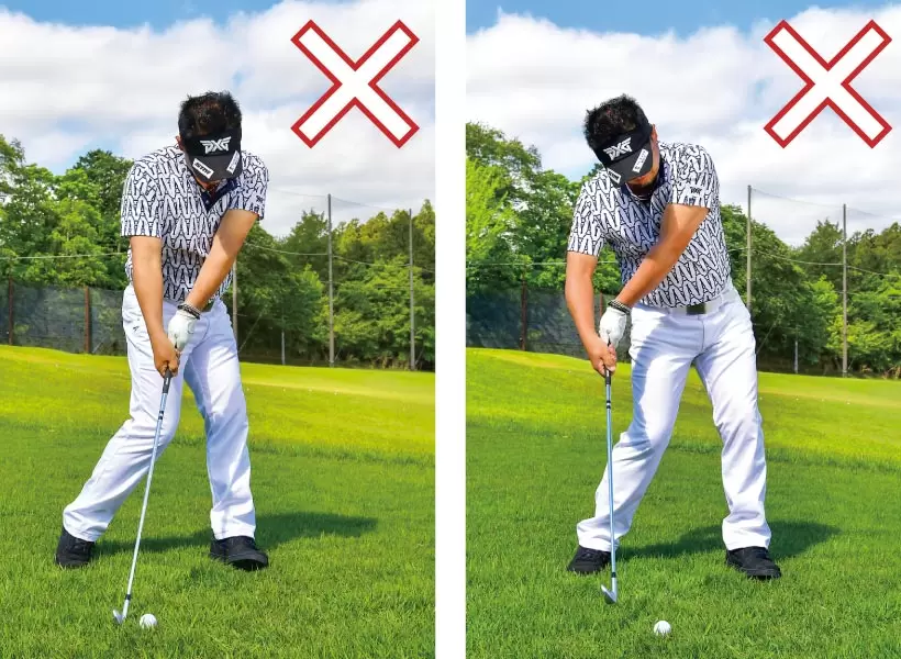 ボールの手前にヘッドが落ちるから、手や体を使って修正しなければならない。