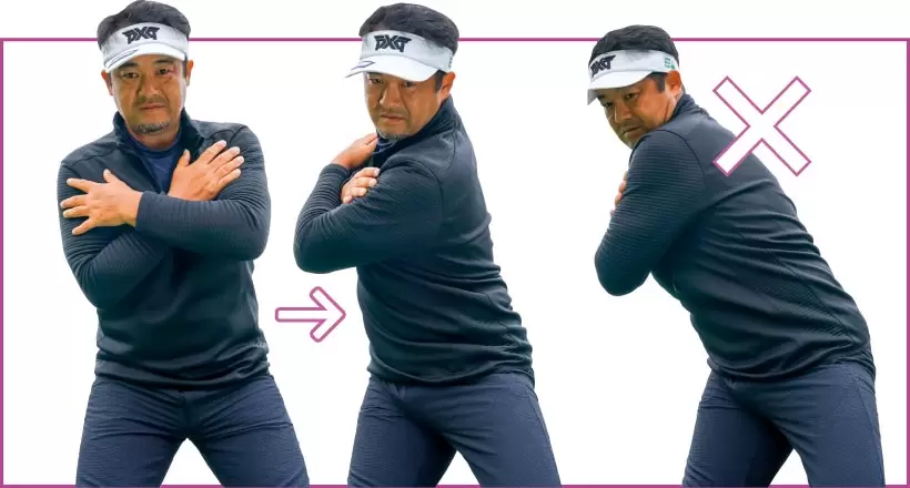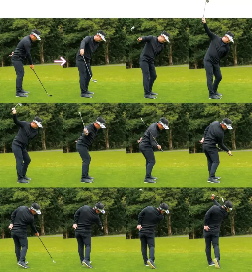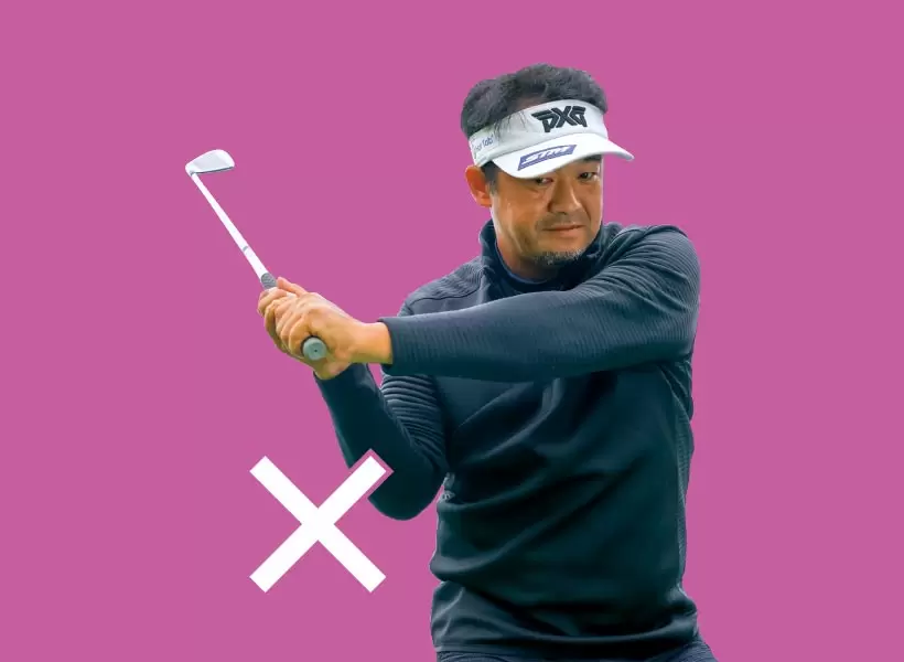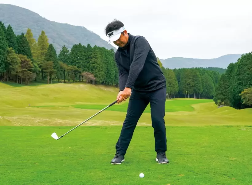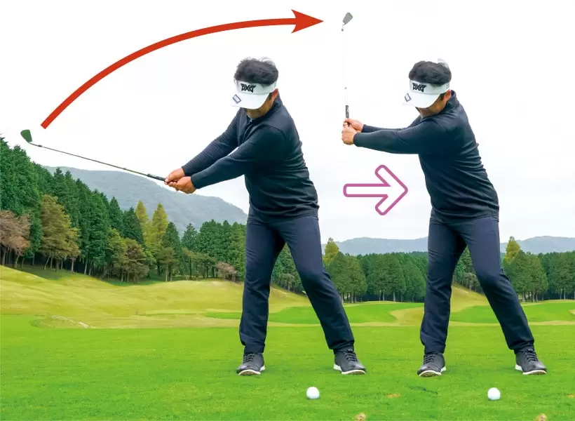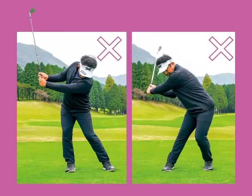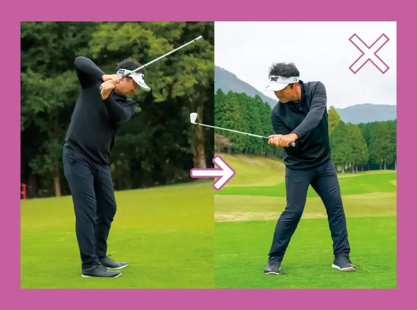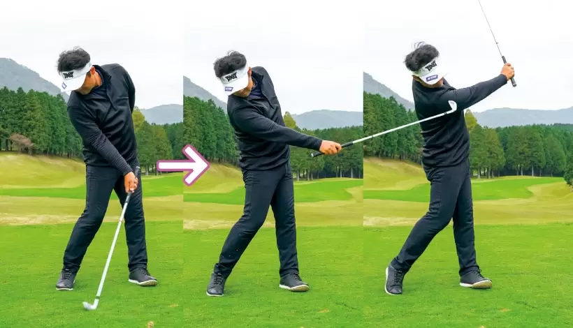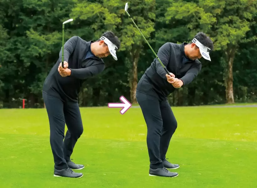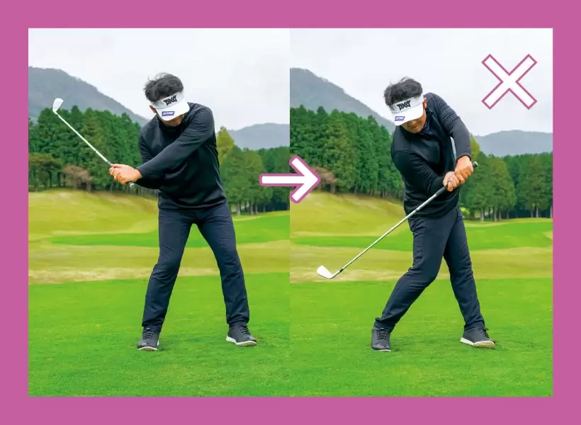 クラブを能動的に引き上げるほど、体が伸び上がったり、腰が引ける。