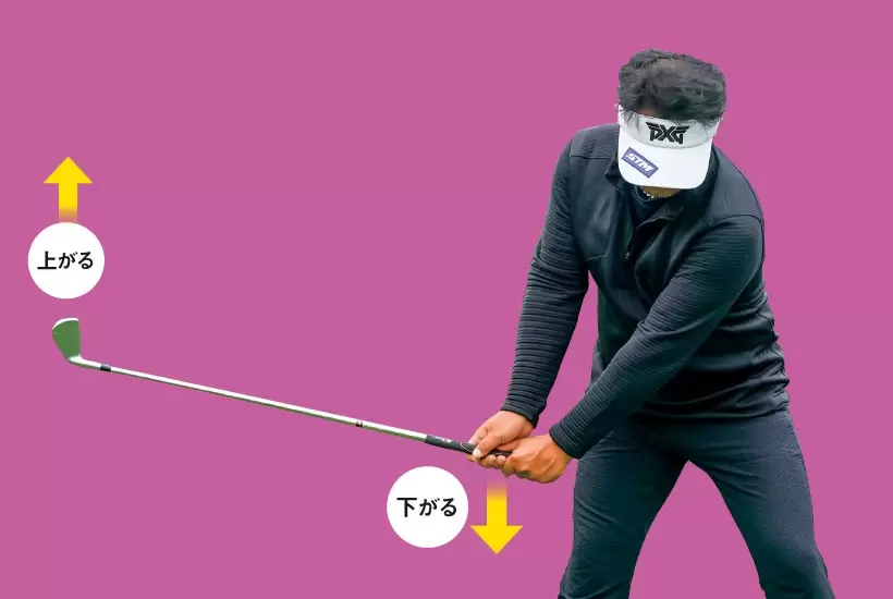 手元が下がってクラブヘッドが上がる。これがテークバック~バックスイング本来の姿。