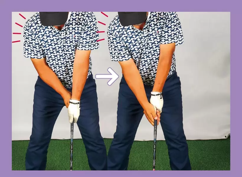 クロスハンドから通常のグリップに戻して構えると、正しいアドレスから始動できる。