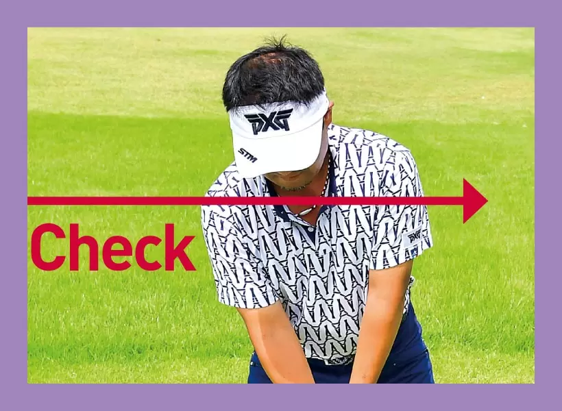 アドレスでつねに肩のラインをチェックする習慣をつけることも重要だ。