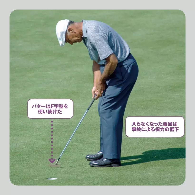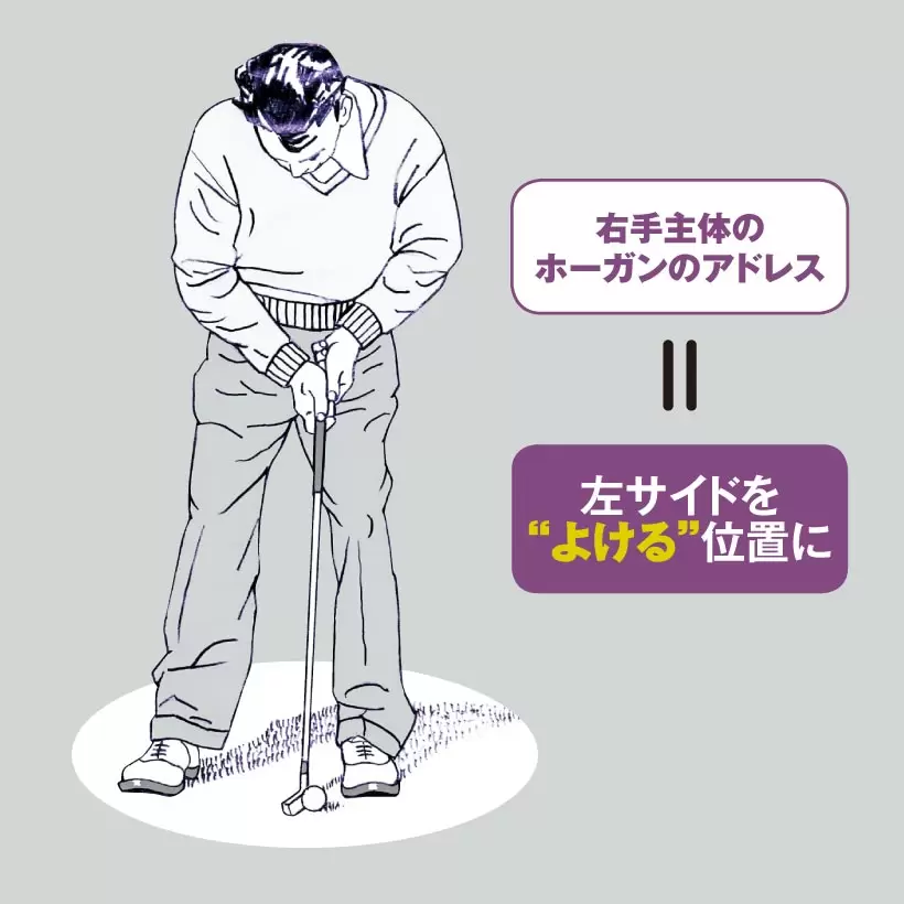 上はホーガンのグリップ。「右手はパームで握り、フェースとの一体感を出しつつ、左手は下から支えるように持ち、右手の動きを邪魔しない。スナップ動作を生かすグリップです」(森)