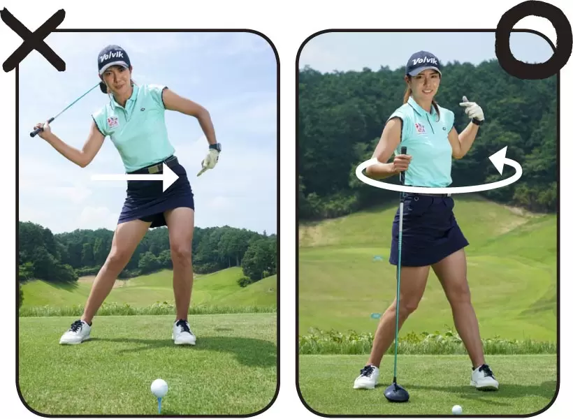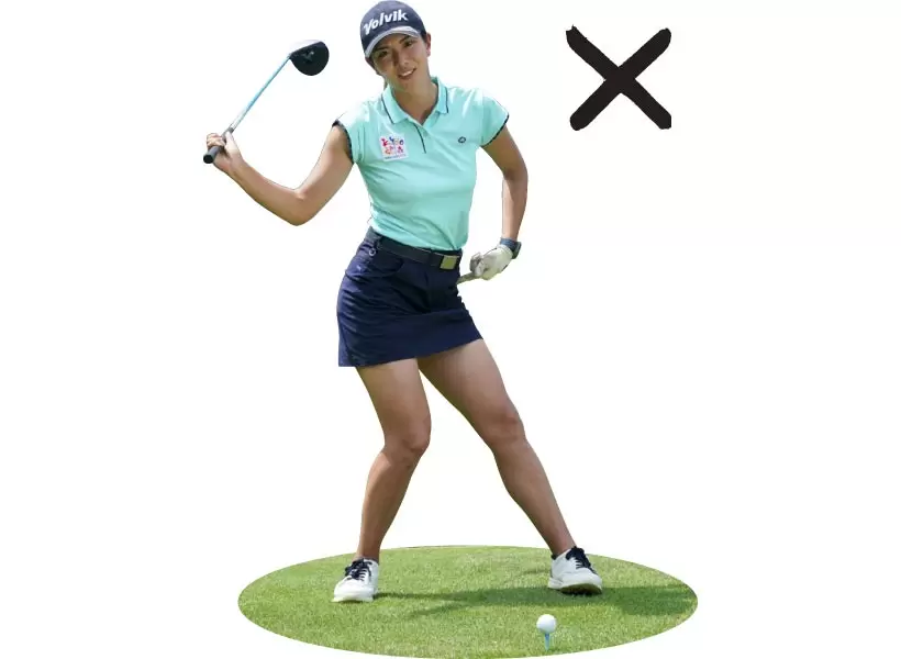 腰の回転が早すぎると飛ばないだけでなく、フェース面が閉じたり、開いたりしやすいので方向性も悪くなる。