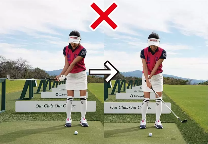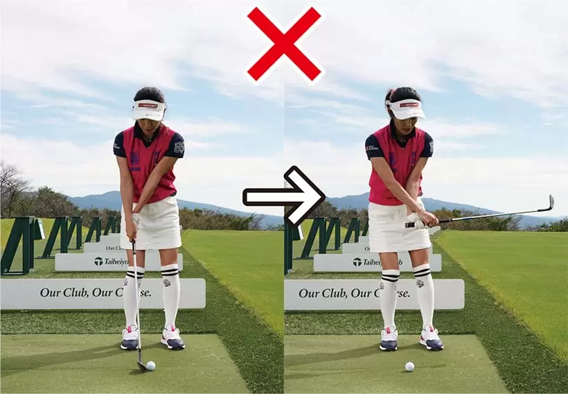 ダウンスイングのスピードが速いために腰が引けて手が返ってしまうパターンも多い。