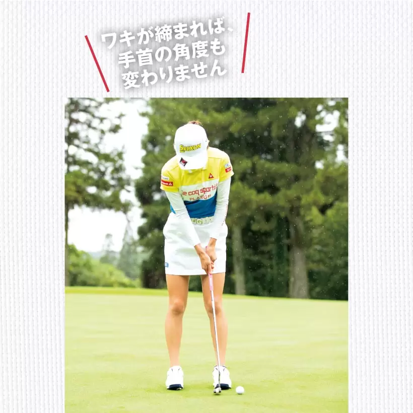 両ワキが締まっていれば、腕もアドレスの形をキープできるので、手首の角度も変わりにくい。