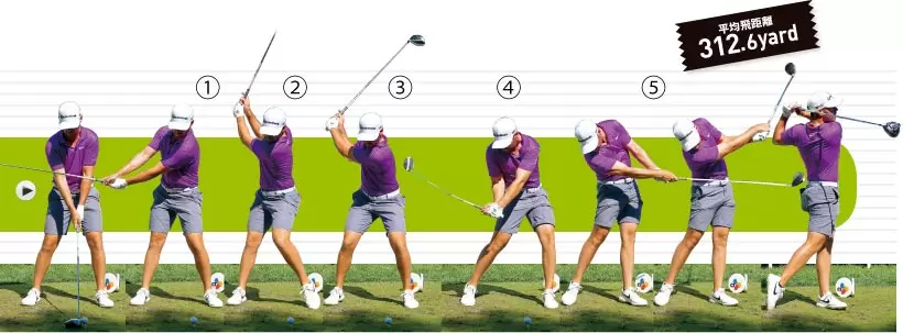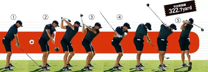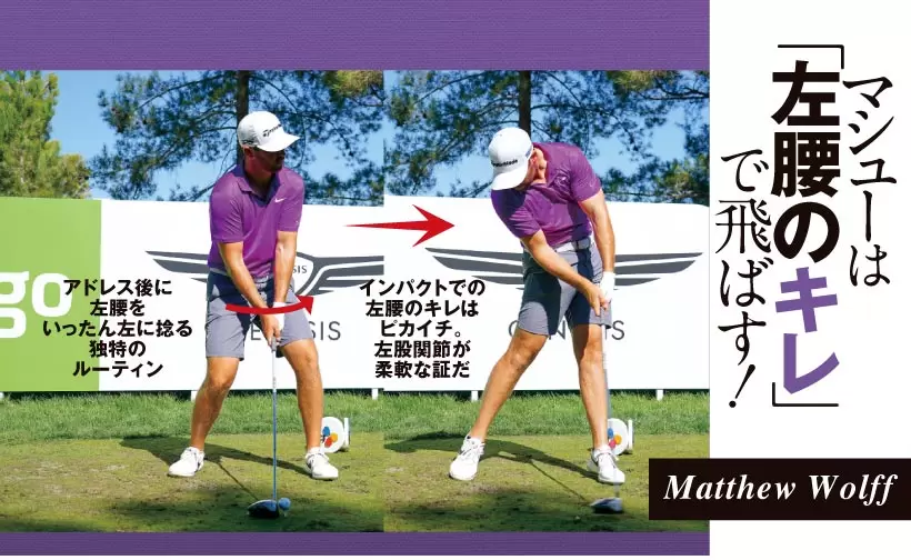アドレス後に左腰をいったん左に捻る独特のルーティン/インパクトでの左腰のキレはピカイチ。左股関節が柔軟な証だ
