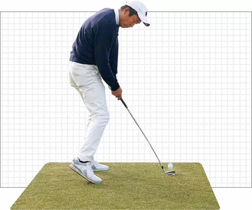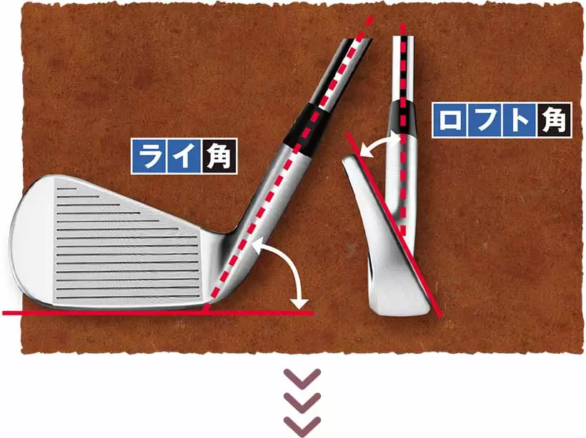 ヘッド重心がシャフト軸線上にないため、インパクトではシャフトがタテにしなり“トゥダウン現象”が生じる。ライ角調整は、このぶんも計算に入れる。