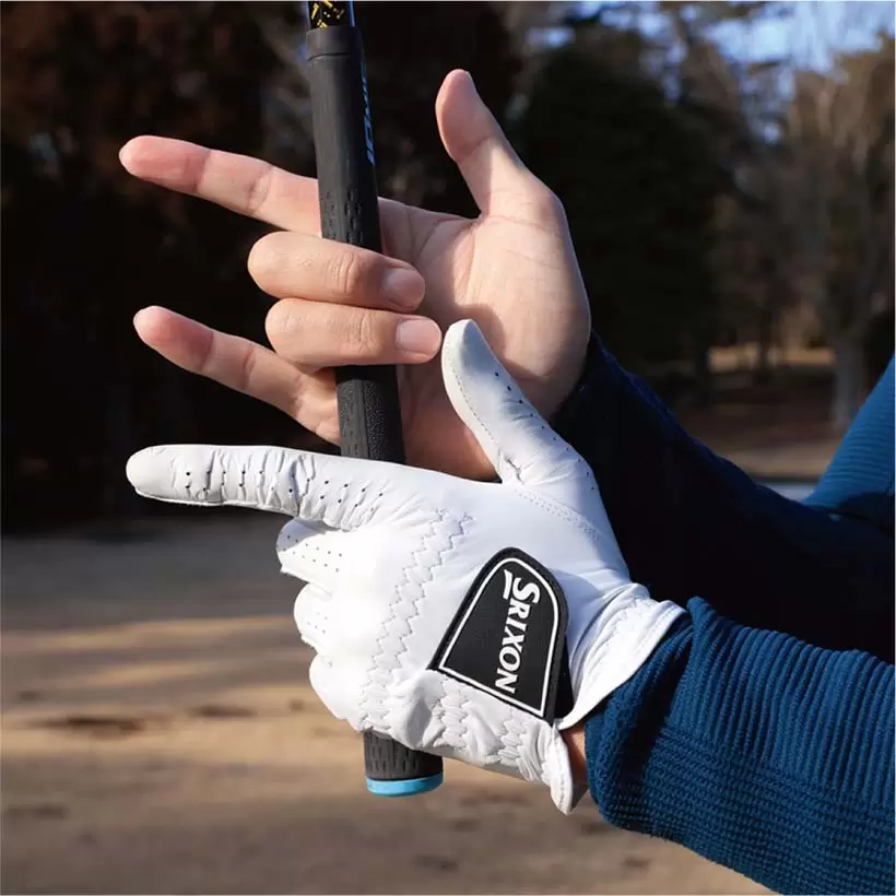 左手の小指側の3本と右手の中指と薬指の計5本をグリップに巻きつけて締めておく感覚で握る。