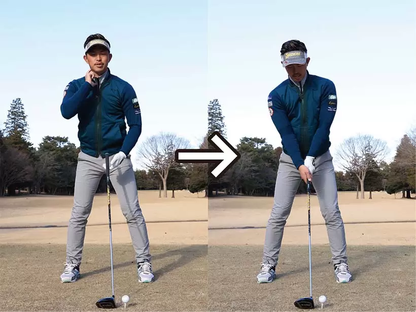 首を長く見せるつもりで構えよう。そのためには両手の握り圧にも気を配ることがとても大切だ。