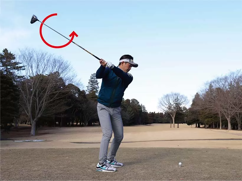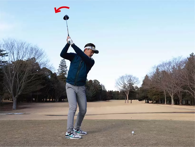 トップの位置に上げたら、自分からみ手クラブを小さく右回りに動かしてみよう。