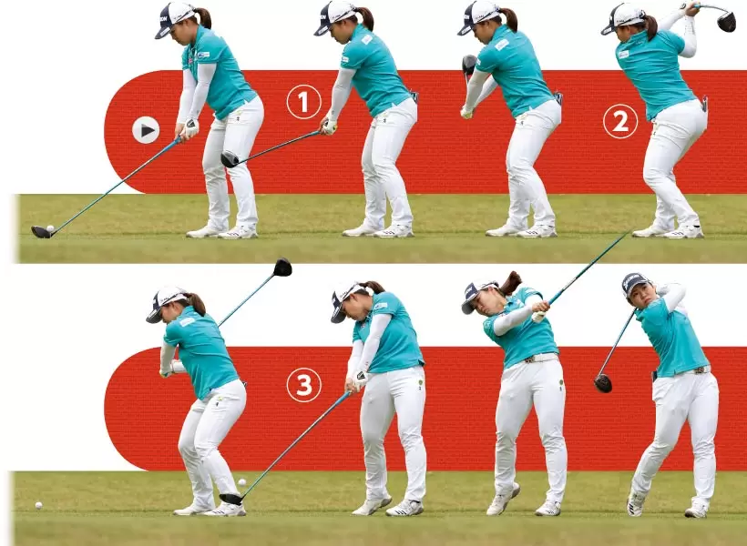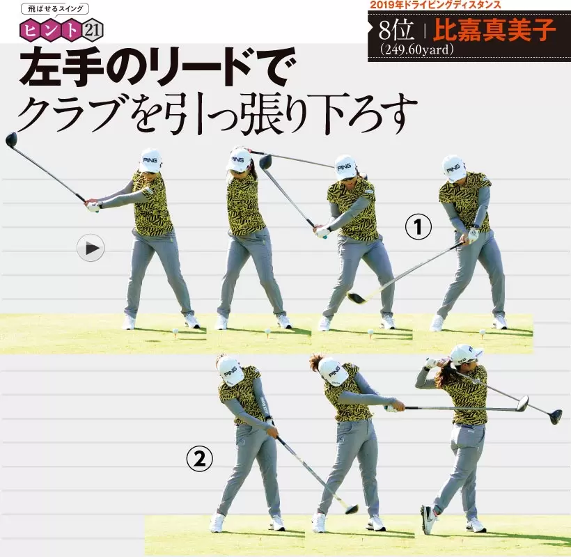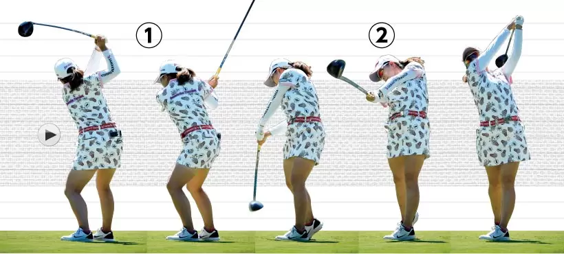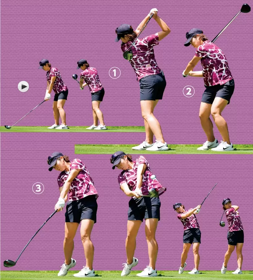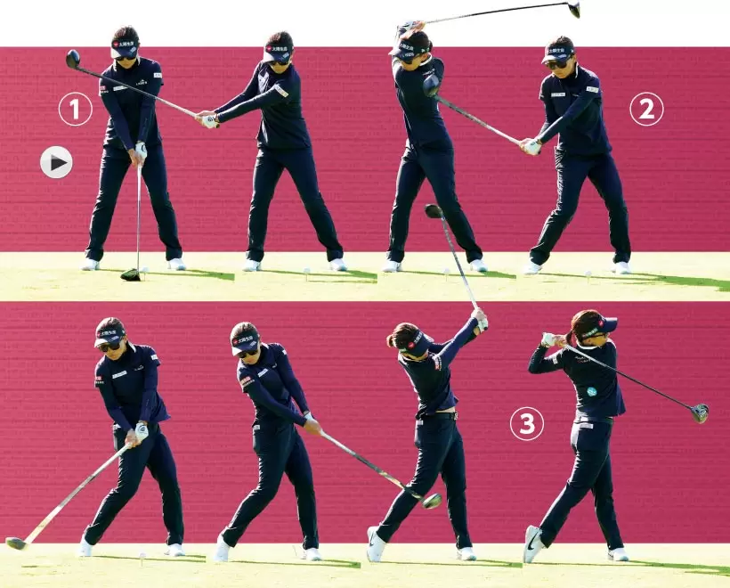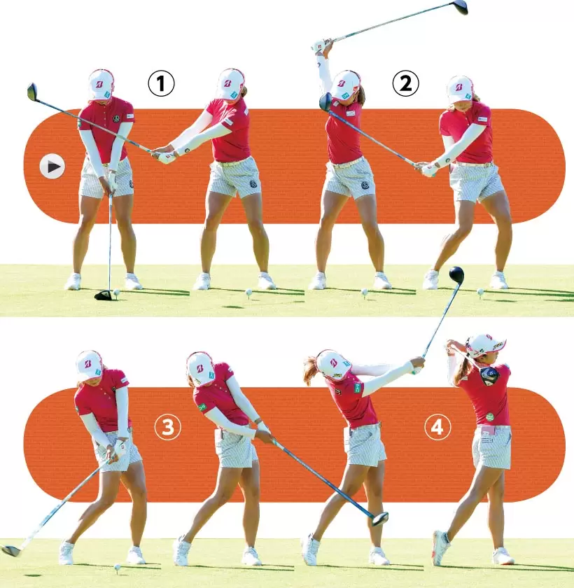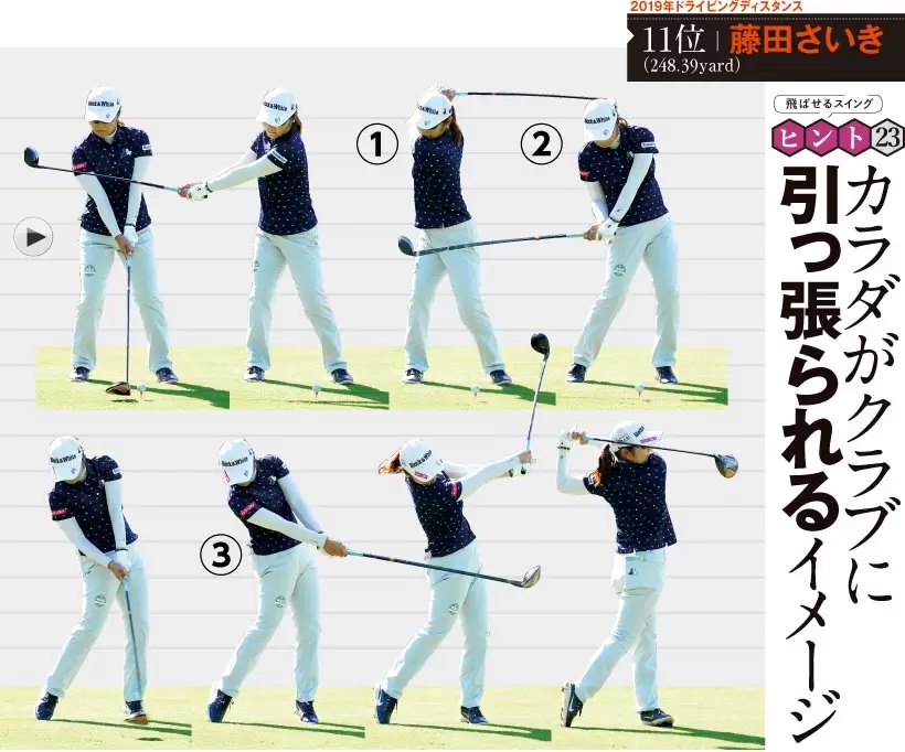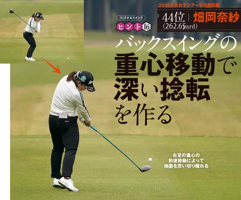 ドラコン選手のようにカラダの伸び縮みを使ってヘッドスピードを上げる。