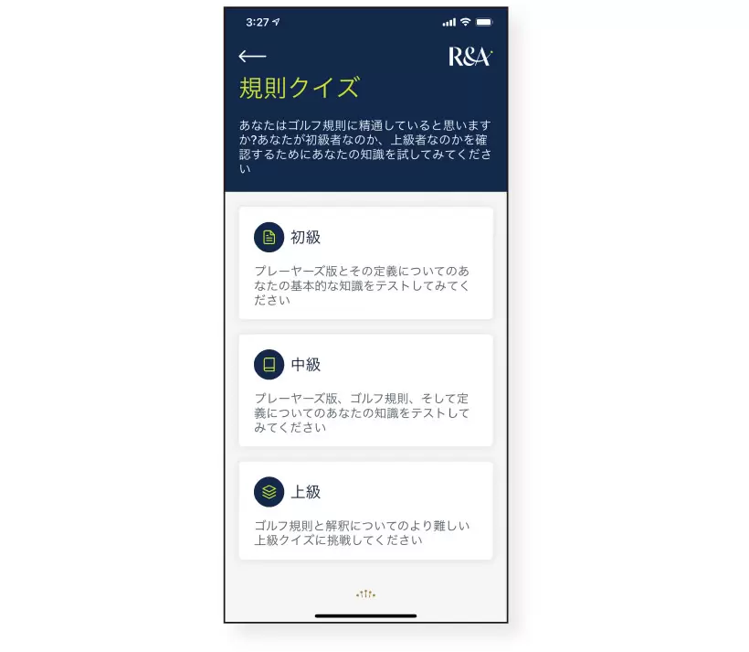 クイズもあって楽しめる『R&A公式ゴルフ規則アプリ』。