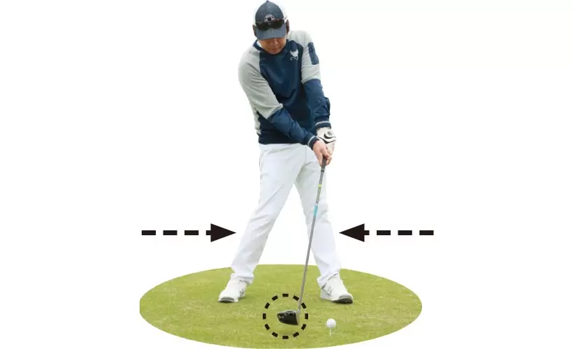 ボールをいつもより半個〜1個分右に置いて、より低い弾道をイメージする。ハンドファースト気味になり、あおる動きが抑制できる。スタンスを狭くするのも有効。