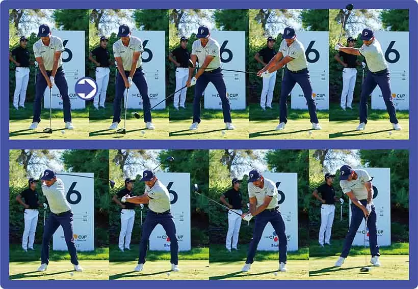 リッキーファウラーの強烈なタメ。しかし、これは本人が意図的に“タメよう”としているわけではない。手首が自由な結果、クラブの物理現象によって起こっていること。