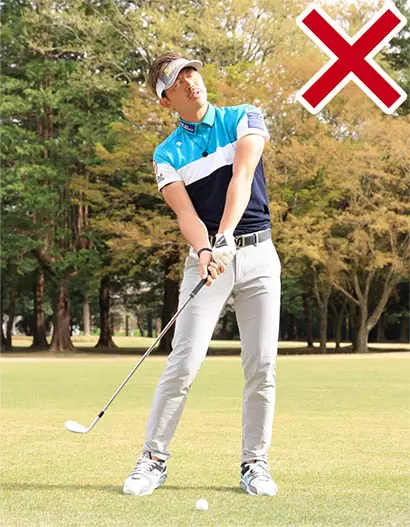 ボールを上げようとして上体が起きるのもミスショットの原因となる。