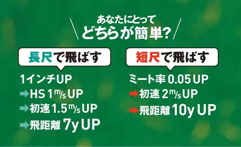 上の表をご覧になっていただければわかるとおり、長尺で飛ばすよりも短尺で飛ばすほうが効率が良いのです。