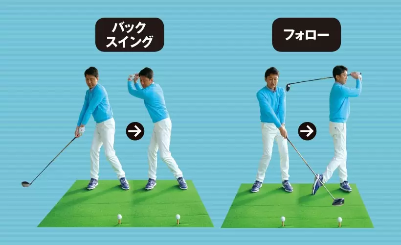 飛ばせるスイングは例外なく、バックスイングよりダウンスイングの円弧が小さい。「ヨコ」と「タテ」をマッチさせ、フォローに向かって大きな円を描くイメージをもとう。