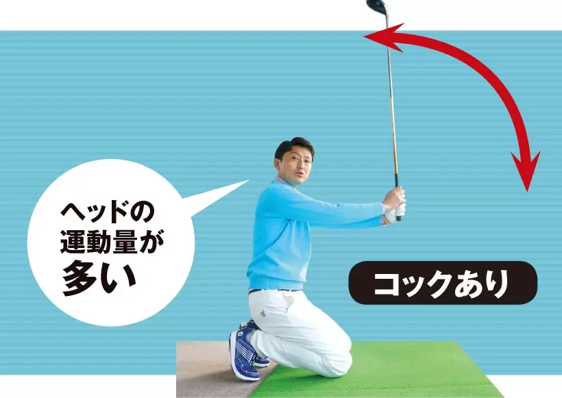 コックがないとヘッドの運動量は少なくなる。