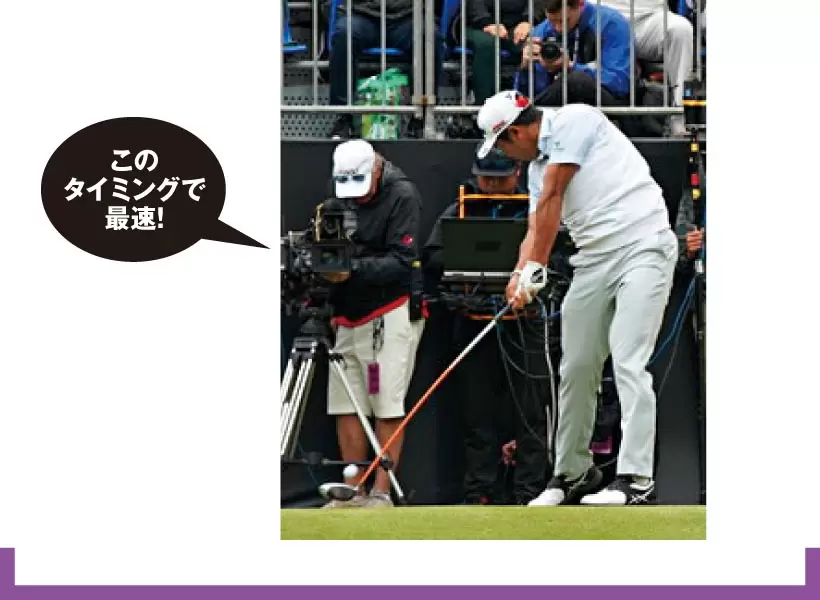 コックを保ちリリースを遅らせるとヘッドの運動量が多くなり、最速でインパクトを迎えられる。