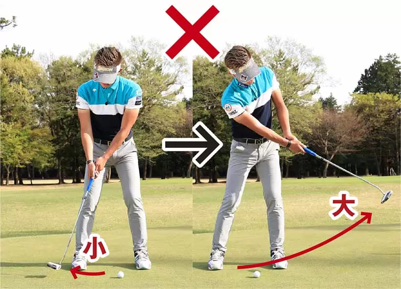 パターヘッドを真っすぐ振ろうとすると手先の動きとなり、軌道がブレやすい。