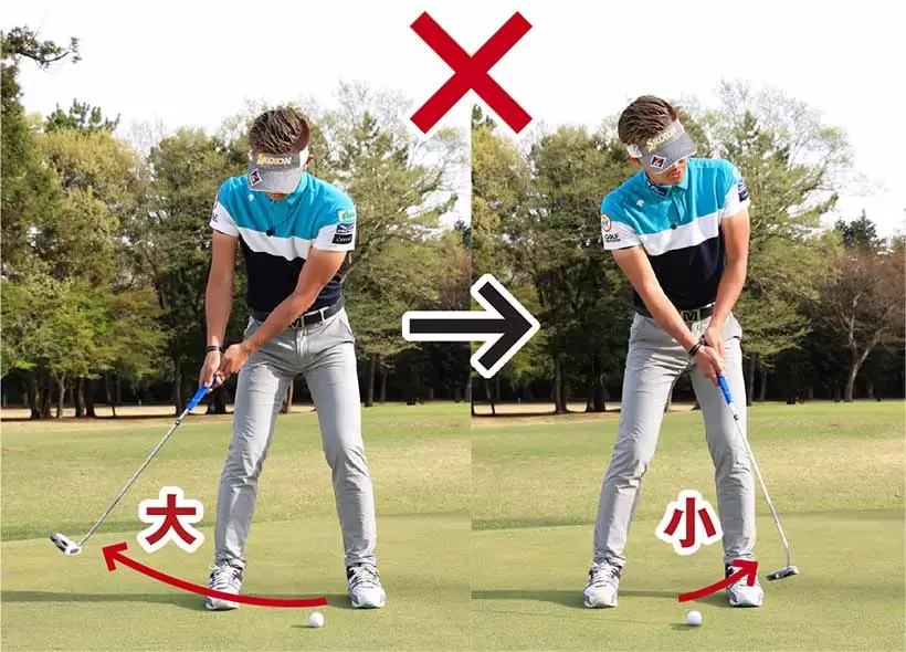 お腹の回転によってパターヘッドは緩やかな円軌道を描く。真っすぐ振る意識は持たないことだ。