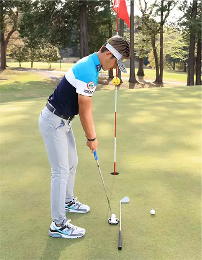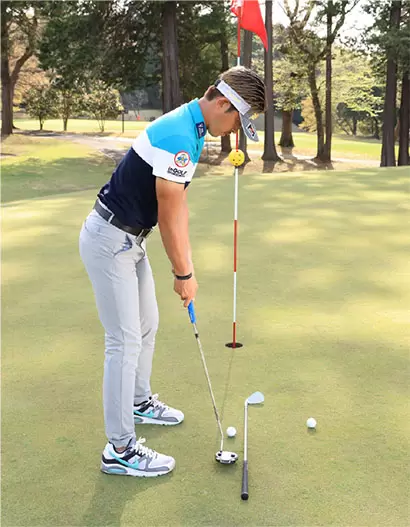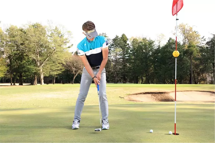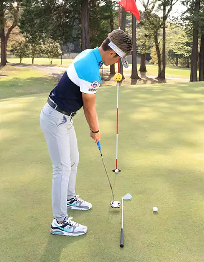 フェースをスクエアにキープし、フェースの芯に当てればカップインの確率が上がる。