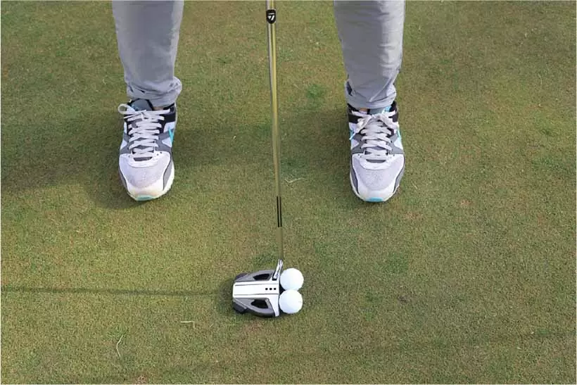 ラインの少し外側にクラブを平行に置き、1〜2メートルを入れる練習をしよう。