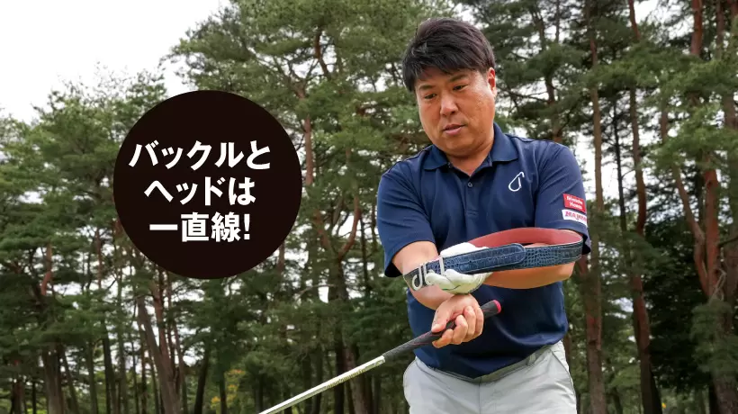 ベルトのバックルとヘッドが一直線になることを意識して練習すると、手打ちの癖を解消して、体で打つアプローチになっていく。