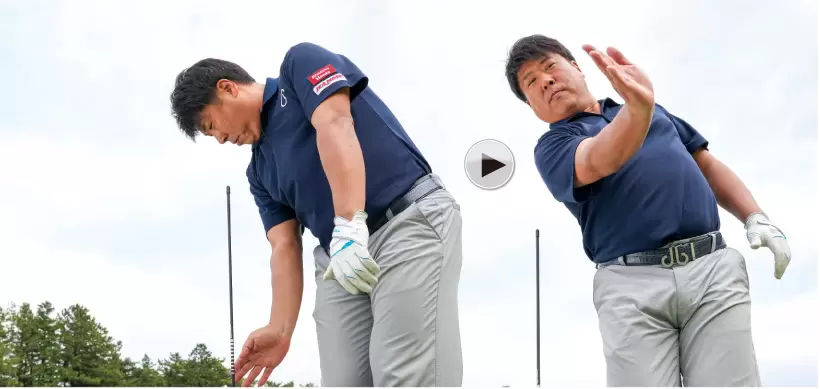 「最初は左足下がりから思い切って右ヒザを目標方向に回して、腰を回す感覚を教えました」(辻村)