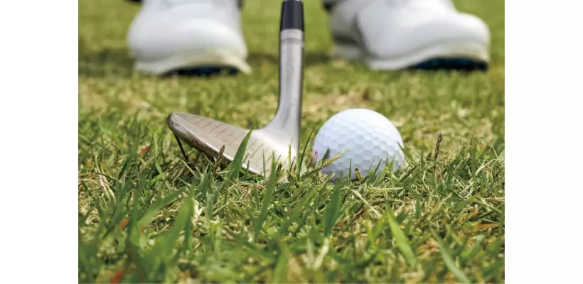 フェアウェイや花道と同じ構えだと、ソール全体が芝に当たってしまうので、ヒール側が引っかかりやすくなる。